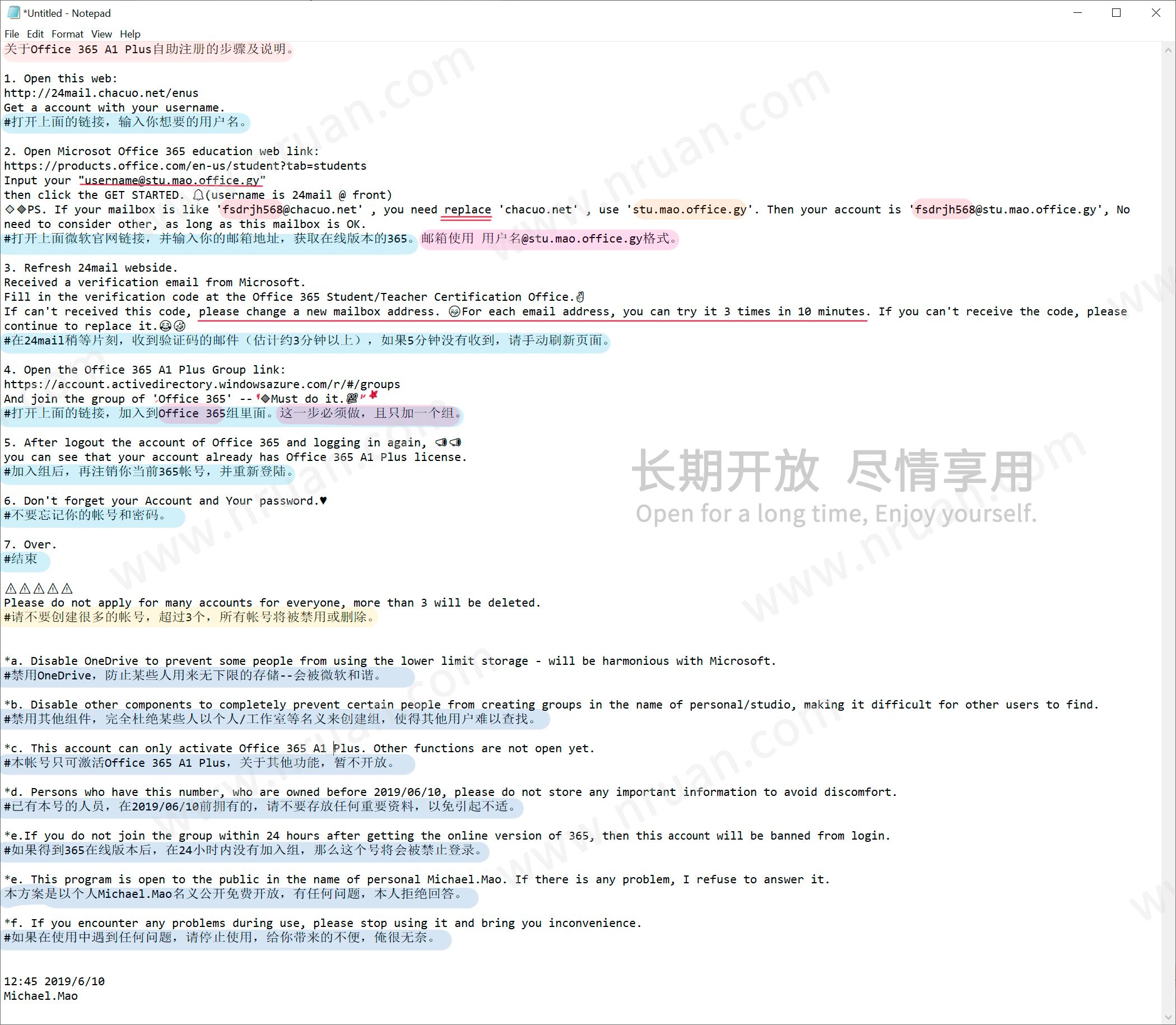 关于Office 365 A1 P1us自助注册的步骤及说明。